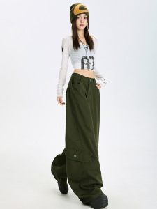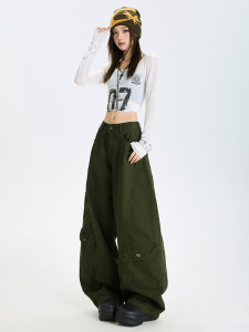 美式街头宽松阔腿裤女2025秋季慵懒风工装裤高腰休闲镰刀弯刀裤