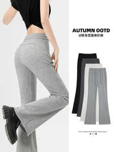 灰色运动微喇裤女早秋款小个子阔腿显瘦喇叭裤美式提臀休闲垂垂裤