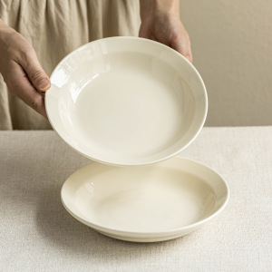 奶油风陶瓷盘极简餐具深盘家用圆形盘子批发菜盘餐盘沙拉盘西餐盘