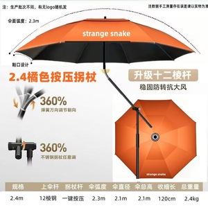 【新款按压拐杖伞】全钢黑胶分层2.4橘色