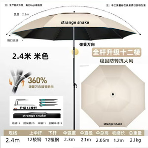 新款钓鱼伞新款遮阳伞户外露营伞便携带黑胶防晒拐杖伞露营垂钓专
