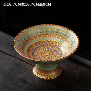 中式陶瓷莲花高脚盘子供盘糕点摆盘点心零食水果盘高端精致高颜值