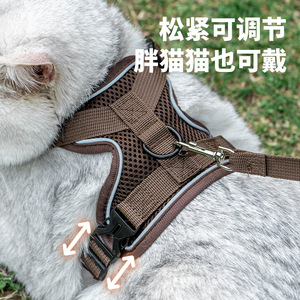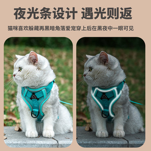 宠物日用牵引绳夜间反光防挣脱遛猫绳猫牵引绳猫猫透气胸背带