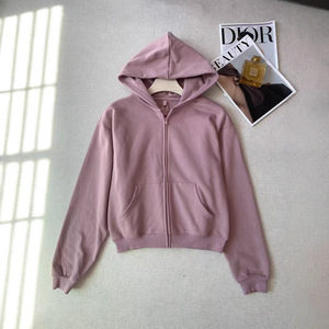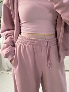 skims卡戴珊粉色休闲运动服外套时尚慵懒风拉链连帽薄绒外套卫衣