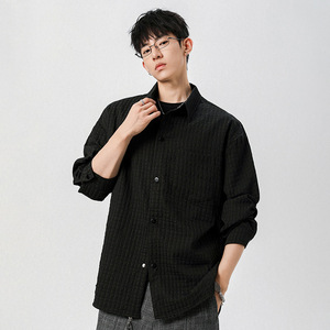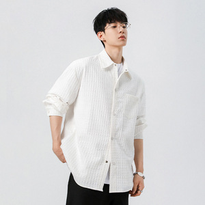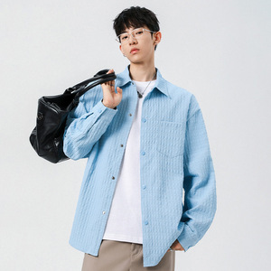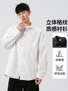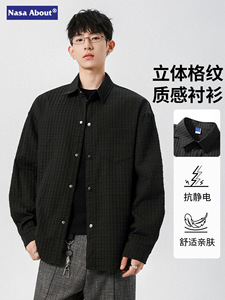 NASA小香风男2025新款春秋季长袖衬衫宽松休闲时尚纹理感上衣外套