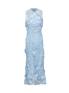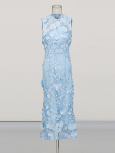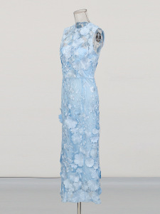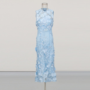 欧美外贸优雅立体装饰花朵刺绣收腰无袖2025新款夏季长裙款连衣裙