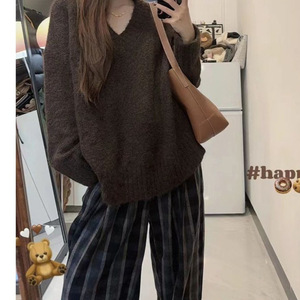 美拉德穿搭复古咖色毛衣女秋冬新款新品宽松慵懒风上衣