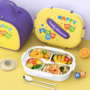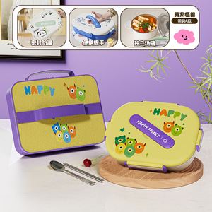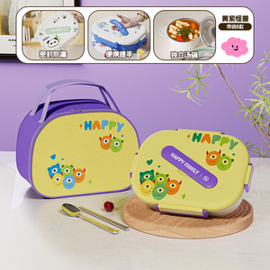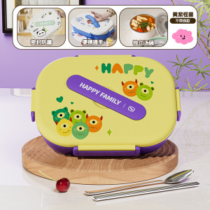 四格-黄紫搞怪兽【赠汤碗+餐具+方袋子】