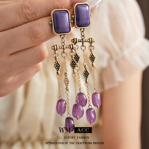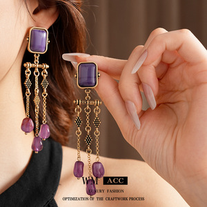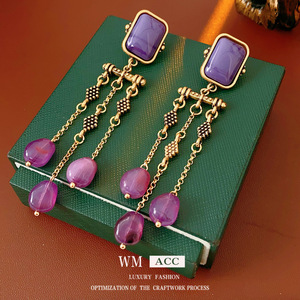 中古vintage方形流苏耳环复古设计感小众耳钉时尚气质高级感耳饰