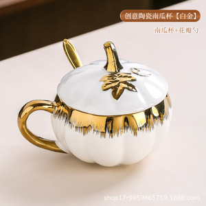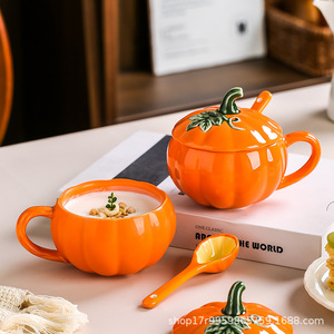 南瓜杯可爱杯子创意水杯陶瓷燕麦早餐杯高颜值马克杯带盖带勺碗杯
