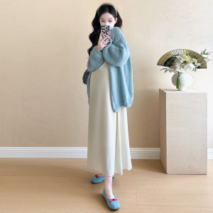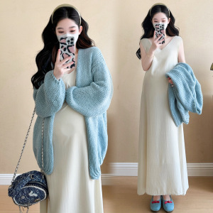实拍 孕妇装2025秋季新款时尚孕妈穿搭背心吊带裙套装