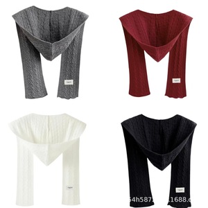 春秋季网红披肩帽子连帽针织外搭韩版带标小披肩空调房保暖披肩30