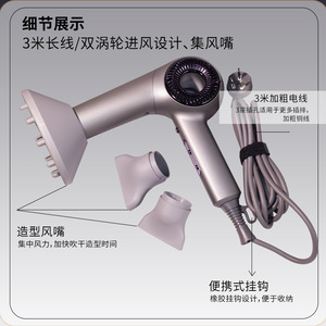 高速无叶吹风机负离子强风速干造型不伤发大功率电吹风空心吹风筒