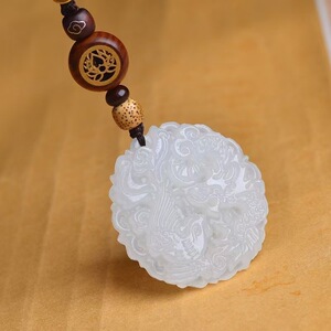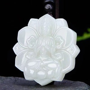 天然阿富汗白玉吊坠玉色观音佛关公龙凤对玉石挂件吊坠