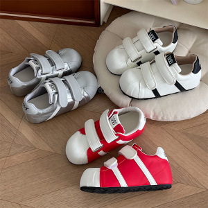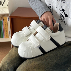 银色复古魔术贴平底内增高德训鞋女2025新款夏季软底休闲板鞋子