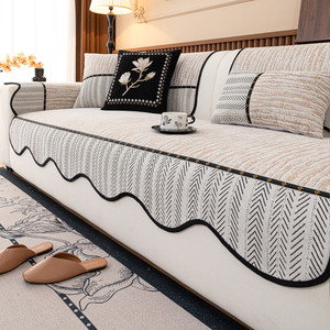 鱼骨纹雪尼尔异形沙发垫四季通用2025新款一片式坐垫防滑靠背盖布