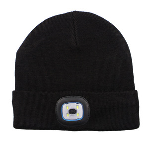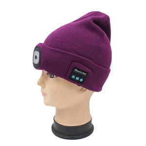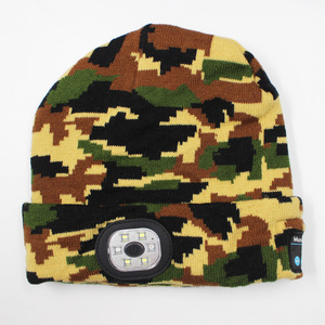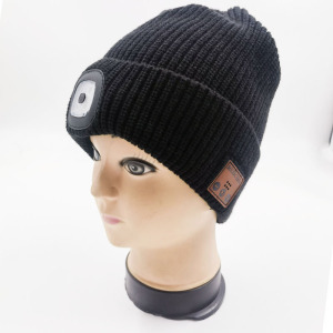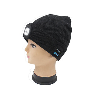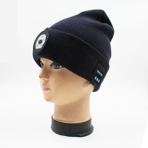 跨境蓝牙耳机led帽灯户外骑行百搭保暖运动可充电针织帽发光帽子