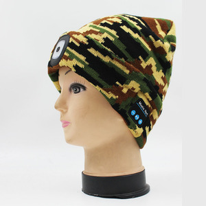 跨境智能蓝牙耳机led头灯针织帽 户外运动保暖防风套头戴毛线帽子