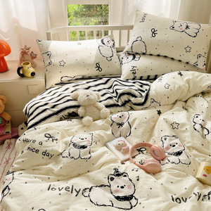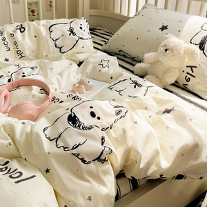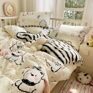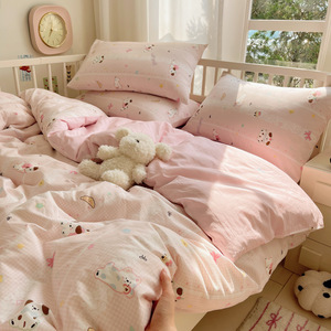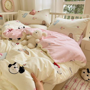 卡通全棉床上四件套2025新款纯棉被套印花床单宿舍床品三件套床笠