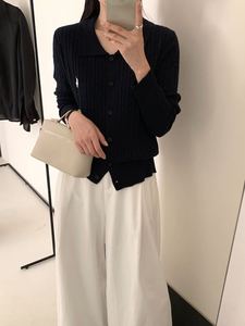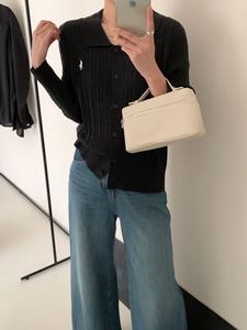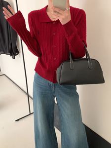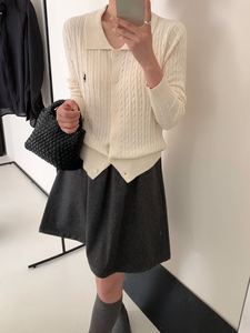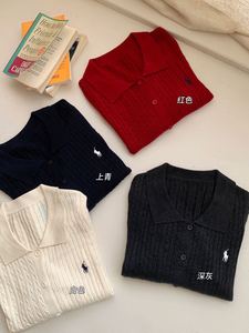 2025秋季新款刺绣小马Polo领麻花长袖针织开衫小香风含蚕丝羊毛