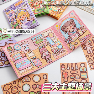 小麻薯磁吸安静书贴纸创意手账素材儿童DIY三折页场景换装贴纸本