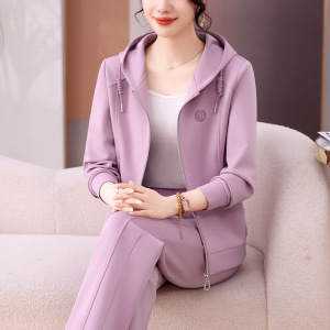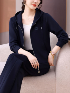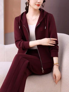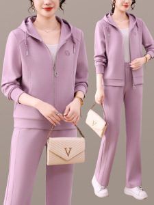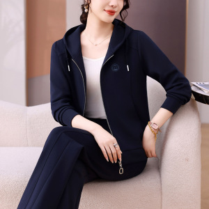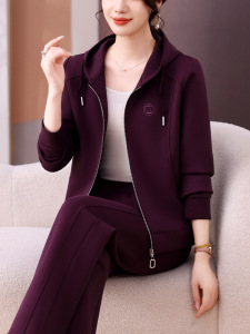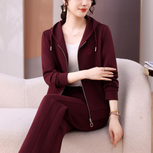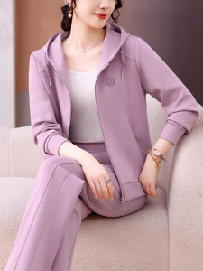 妈妈洋气春秋运动套装2025新款中老年时尚连帽拉链卫衣休闲两件套