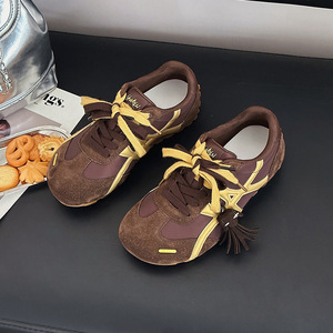 韩版真皮透气超火阿甘德训鞋女2025秋新款时尚百搭增高运动休闲鞋