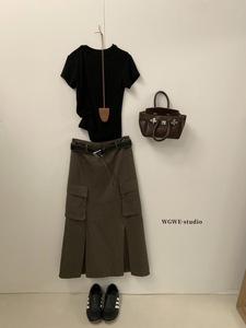 WGWE6570#2025新款美式复古工装高腰显瘦遮胯A字中长款半身裙女秋