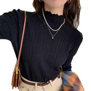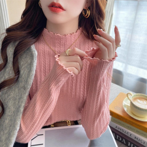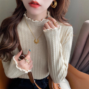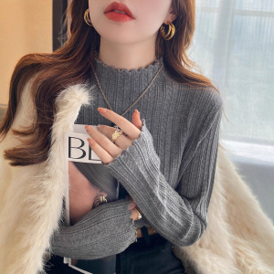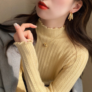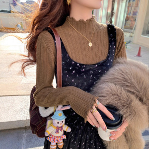 半高领内搭毛衣打底衫秋冬新款软糯温柔修身气质木耳边针织衫上衣