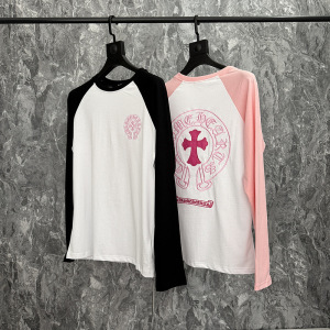 高品质2025新款克罗伈CH爆款梵文马蹄拼接刺绣字母长袖T恤打底衫
