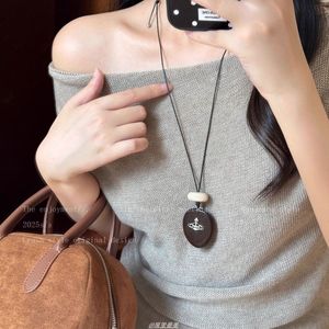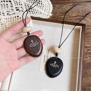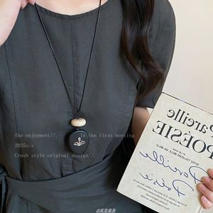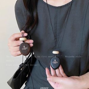 穿搭加分~咖色木质土星项链女2025新款小众设计新中式毛衣链配饰