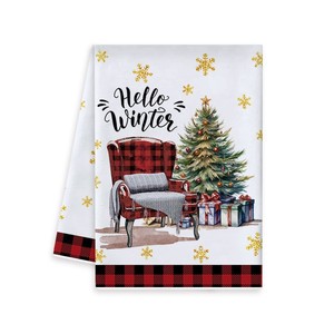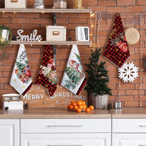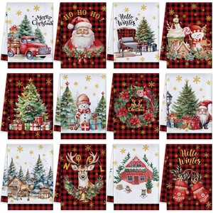 新款跨境细纤维卡通格子圣诞树系列茶巾圣诞快乐洗碗毛巾厂家批发