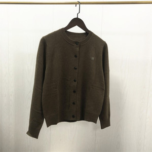 AC笑脸羊毛衫圆领针织开衫长袖外搭正肩毛衣秋装毛衫2025秋冬新款