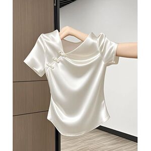 夏季2025新款时尚洋气独特漂亮百搭显瘦T恤国风设计感显瘦上衣女