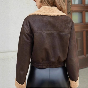 跨境欧美女装秋冬新款皮毛一体抓绒短款夹克休闲百搭保暖外套女