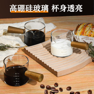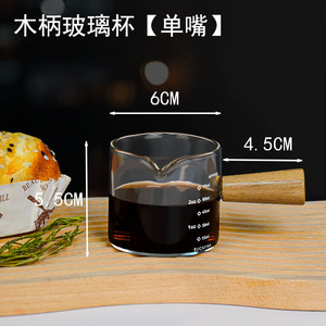 意式浓缩咖啡萃取量杯带刻度咖啡液盎司杯玻璃计量杯木柄小奶盅