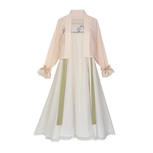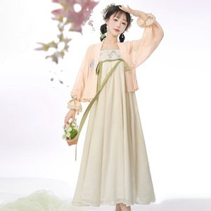 原创设计叠秋萝中国风改良汉元素汉服女上衣吊带裙手袖套装8648