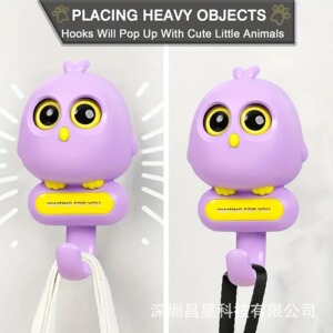 创意卡通衣钩钥匙可爱猫头鹰衣帽粘钩免孔强力眼睛转动小鸟挂钩