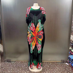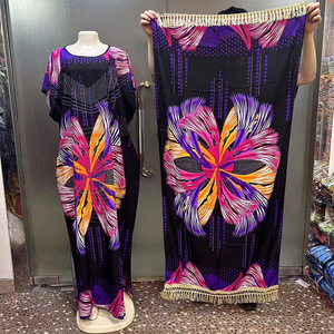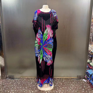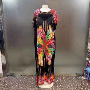 跨境外贸2025新款大码非洲圆领流苏头巾人棉印花彩色连衣裙长袍