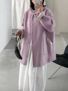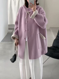 如此可爱 2025秋冬娃娃领减龄可爱中长款双面羊毛大衣小个子必备