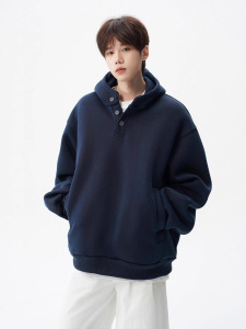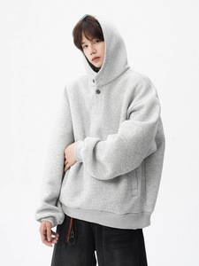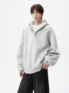 潮牌高级感连帽卫衣男春秋季新款美式纽扣设计感外套休闲帽衫上衣