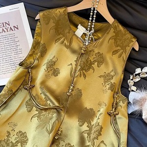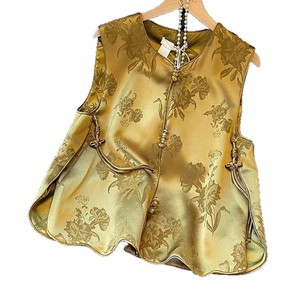 新中式高级国风提花马甲背心女2025新款金色高级复古无袖马夹上衣