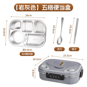 【灰色】五格便当盒