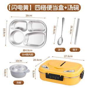 【闪电黄】四格便当盒+汤碗