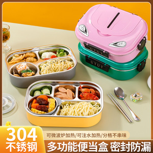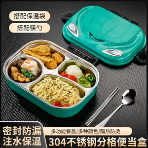 304不锈钢饭盒便携式分格午餐盒学生上班族可进微波炉带饭便当盒