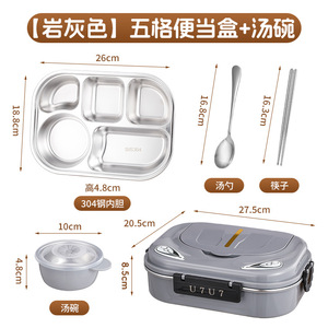 【灰色】五格便当盒+汤碗