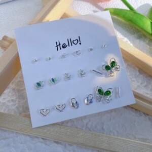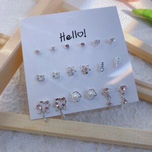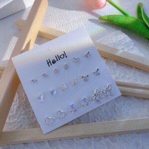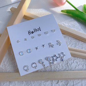 夏季新款套装炫彩闪闪星期不重样银针耳钉甜美日常简约吊坠耳饰