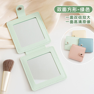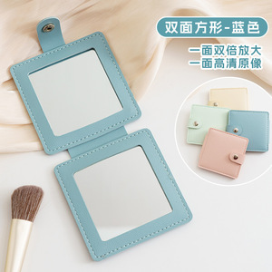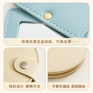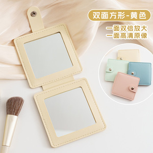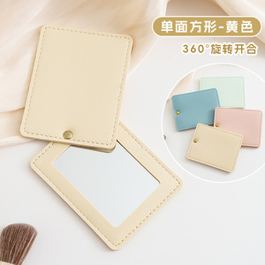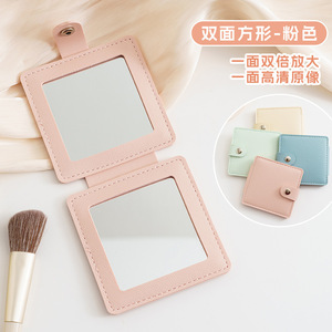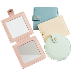 化妆镜折叠便携ins小圆镜旅游创意简约小巧pu随身镜定制奖励礼品