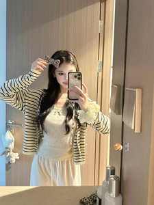 韩系慵懒风条纹针织开衫女2025早秋新款穿搭显瘦外搭毛衣外套上衣