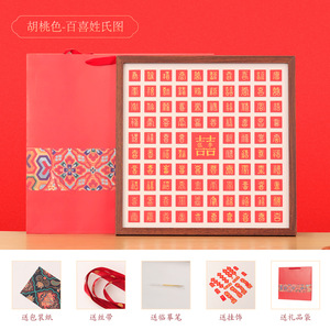 胡桃色姓氏百喜图(相框+红纸2张+金笔2支+礼袋)
